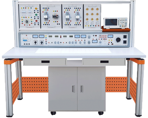 裝置由主機(jī)箱、實(shí)驗(yàn)桌、實(shí)訓(xùn)掛箱、獨(dú)立封裝實(shí)訓(xùn)電路模塊、移動矮柜、示波器架、學(xué)生凳等組成。實(shí)訓(xùn)裝置支架與實(shí)訓(xùn)桌可組合、可拆裝。支架與桌腳一體,鋁合金結(jié)構(gòu),實(shí)訓(xùn)掛箱、各實(shí)驗(yàn)?zāi)K可根據(jù)實(shí)驗(yàn)需求自由組合放置。