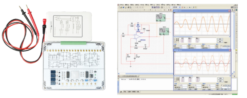 NI Multisim軟件:NI Multisim結(jié)合了直觀的捕捉和功能強大的仿真,能夠快速、輕松、高效地對電路進行設(shè)計和驗證。憑借NI Multisim,可以立即創(chuàng)建具有完整組件庫的電路圖,并利用工業(yè)標(biāo)準(zhǔn)SPICE模擬器模仿電路行為。借助專業(yè)的高級SPICE分析和虛擬儀器,您能在設(shè)計流程中提早對電路設(shè)計進行的迅速驗證,從而縮短建模循環(huán)。與NI LabⅥEW和SignalExpress軟件的集成,完善了具有強大技術(shù)的設(shè)計流程,從而能夠比較具有模擬數(shù)據(jù)的實現(xiàn)建模測量。學(xué)生可以用其進行電路的仿真與教學(xué)結(jié)論的補充驗證,幫助快速理解與驗證電路的正確性。