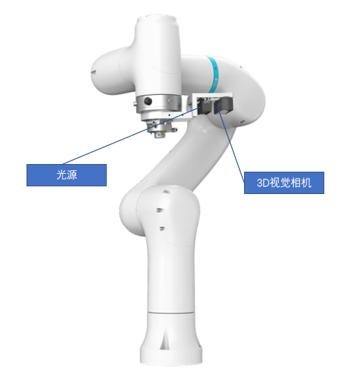 3D視覺檢測單元是整個設(shè)備的核心單元之一,基于雙目結(jié)構(gòu)光3D成像技術(shù)獲取物體的深度圖像,具有高精度、廣視角等技術(shù)特點??筛鶕?jù)視覺系統(tǒng)的處理結(jié)果,機器人可進行物料無序分揀、形狀識別、顏色識別。如圖所示。