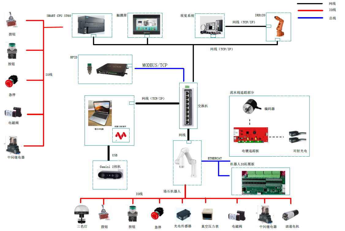智能制造設(shè)備技術(shù)應(yīng)用平臺取于工業(yè)應(yīng)用場景,里面主要元件如工業(yè)機器人、協(xié)作機器人、鎖螺絲工具、皮帶輸送單元等均來自實際應(yīng)用場景。