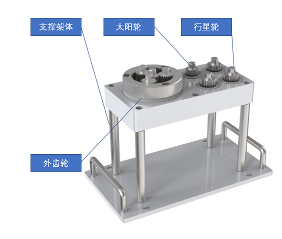 行星齒輪裝配單元是用于機器人和視覺進行柔性裝配的重要一環(huán),由支撐架體、行星輪、太陽輪、外齒輪等組成。此裝配過程通過視覺定位齒輪位置進行行星齒輪快速柔性裝配,可避免齒輪齒形誤差造成的安裝困難。并且很好的展示了協(xié)作機器人的力控特性。如圖所示。