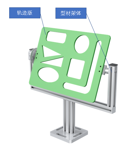 2D軌跡訓(xùn)練單元是將協(xié)作機器人對產(chǎn)品裝配前的涂膠工藝進行功能抽象化,協(xié)作機器人抓持涂膠工具沿軌跡板上不同輪廓軌跡運動,模擬涂膠工藝,軌跡板角度可調(diào),保證工藝真實性同時增加教學(xué)可行性和趣味性。配備發(fā)動機模擬蓋板組件,實現(xiàn)定點位置處的軌跡訓(xùn)練如圖所示