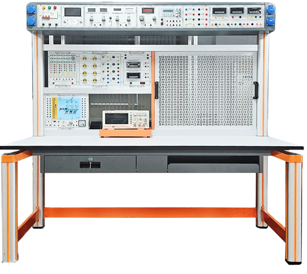 電工技能綜合實訓(xùn)裝置主要由實訓(xùn)桌、主機(jī)箱、外接儀器工作電源箱、實訓(xùn)掛箱、網(wǎng)孔板、實訓(xùn)元器件組成。學(xué)生根據(jù)實訓(xùn)線路進(jìn)行元器件的合理布局,安裝、接線全部由學(xué)生自行完成,接近工業(yè)現(xiàn)場,能完成電工基礎(chǔ)電路,電機(jī)控制線路,照明配電的模擬操作,增加實訓(xùn)器材可完成PLC可編程綜合應(yīng)用線路,電子技術(shù)應(yīng)用電路的綜合實訓(xùn)等。通過一系列項目實訓(xùn)培養(yǎng)學(xué)生動手能力和實操技能。實訓(xùn)項目可自行確定,根據(jù)所選的項目選擇相應(yīng)的元器件。該裝置也可作為電工考工的考核設(shè)備。