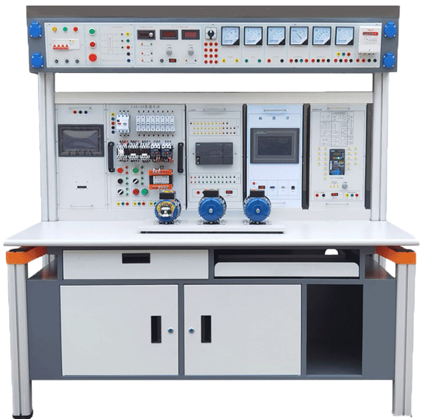 由實訓(xùn)屏、實訓(xùn)電氣元件(繼電器、PLC、電機(jī)等)、實訓(xùn)桌、實訓(xùn)導(dǎo)線、常用電工工具、PLC編程電纜、教學(xué)課件等組成。