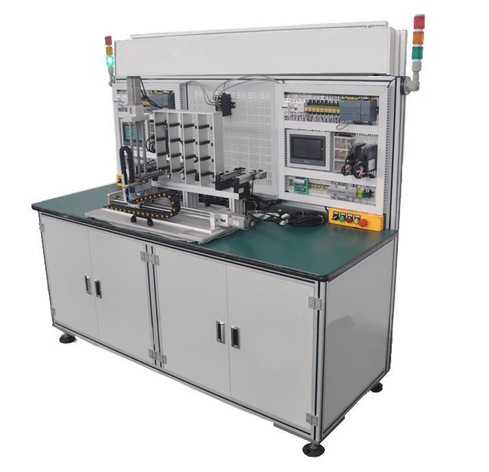 LGJ-CC01型 光機電一體化小型立體倉儲實訓臺采用鋁合金結構框架,帶有腳輪和腳杯,側面安裝1.2mm厚鈑金封板;采用中間放置立體倉庫機構,兩側放置電氣控制部份結構設計,控制電氣接口與立體倉庫間采用標準連接器進行連接對插,可同時容納兩組學生進行電氣調試;單個工作臺外形大體尺寸為:約長2000*寬800*高1600mm;電氣面板采用立式網(wǎng)孔板安裝,配套DIN導軌電氣導軌。