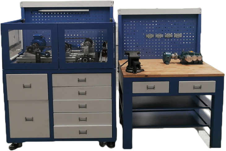 5.設(shè)有存儲(chǔ)柜,用于機(jī)械傳動(dòng)零部件、工量具、資料等的儲(chǔ)存;底部采用工業(yè)腳輪,單輪承重不小于500kg。