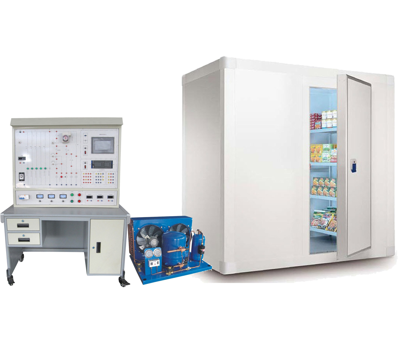 小型冷庫的制冷系統(tǒng)實訓(xùn)裝置由二個部分組成。