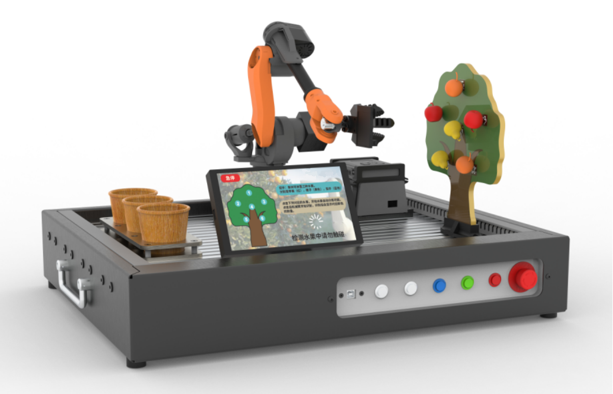 桌面六軸機(jī)器人*1;智能一體化底座*1;視覺(jué)模塊*1;水果配件包*1;實(shí)驗(yàn)指導(dǎo)手冊(cè)*1