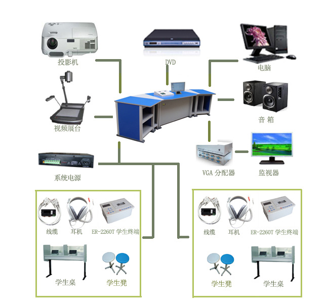 不依賴計算機的語音通訊系統:傳統的語音通訊系統的問題是:一旦計算機出現故障不能工作,全班就“集體失聲”,而一般情況下,受各種因素影響,計算機出現故障的情況非常普遍,因此獨立的語 音通訊系統的好處是:可代替電腦實現除標準考試外的所有功能,以保證正常教學。